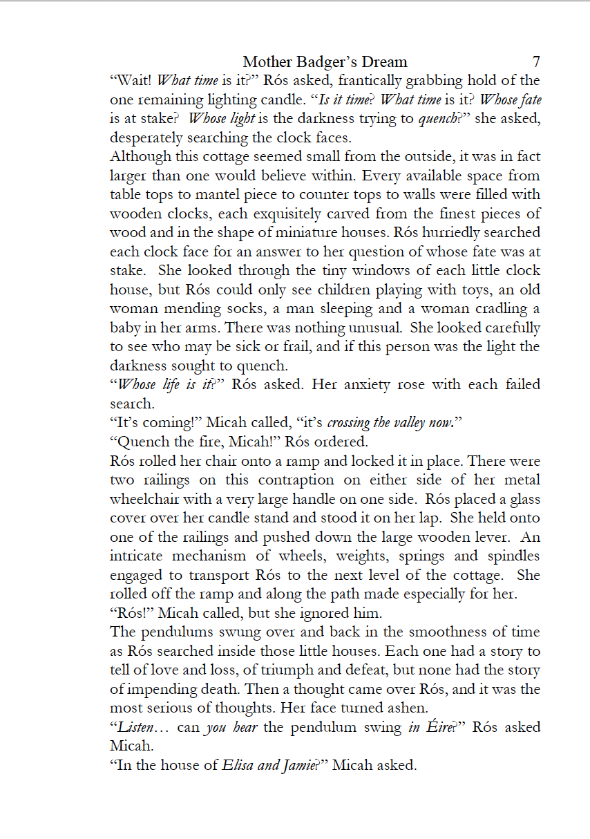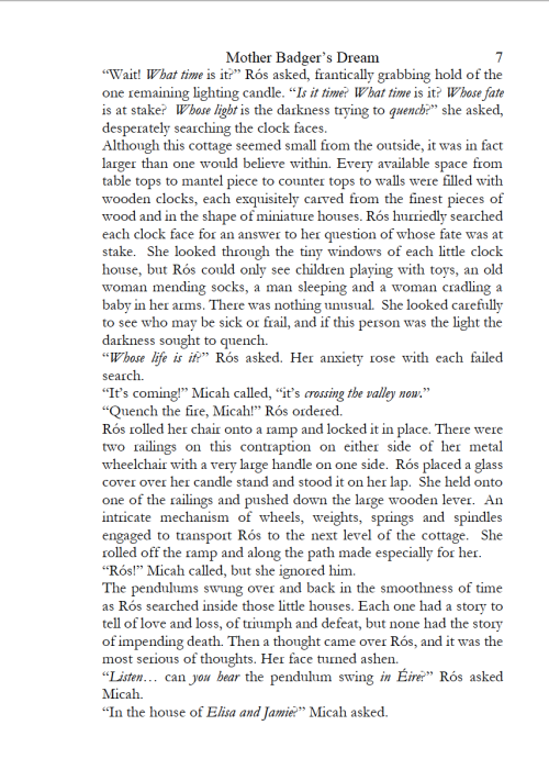 “I saw them fly across the sky spitting flames of fire as tall as trees and then the wind changed direction, and everything was still for what seemed an eternity and … clocks! There were clocks everywhere!”