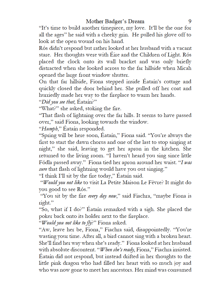 Mother Badger has a prophetic dream and risks her life to warn Elisa and Jamie. The phoenix has flown and the enemy from Fodar is in search of Geaspar, the newly born dragon. Is the dragon safe? Will the thief have his way? Can Elisa count on Jamie to help? All will be revealed on the night of the blood moon when the Fodar army attacks.