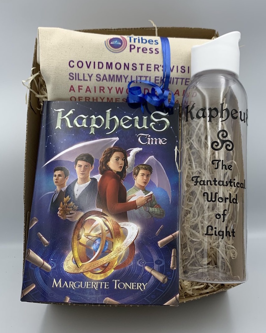 The ‘Super Kapheus Gift Box’ contains all six books in the Kapheus series including the newly released Kapheus Time and all are signed by the author with a special message dedicated to you inside each book. You will also receive an authentic Kapheus series water bottle to show off to all your friends, and the limited edition Tribes Press hard wearing, strong tote bag. This is a durable, tall canvas tote bag made from eco-friendly material that you will be proud to show off wherever you go. It is made of 10oz cotton and completely eco-friendly for the earth conscious shopper (dimensions: 340 x 365 x 85mm).